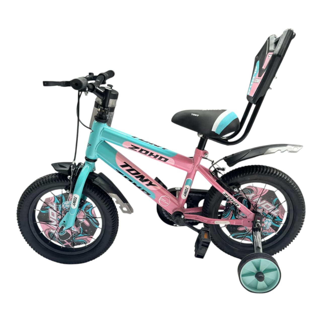 The cycle features a strong steel frame, full chain cover, anti-slip pedals and secure handlebar grips to ensure safety and durability for everyday use. A high backrest padded seat offers better support and comfort during longer rides, while the included water bottle and holder keep kids hydrated and excited to use their new bicycle. This kids bicycle with backrest seat is designed for maximum comfort and safety during all outdoor activities.